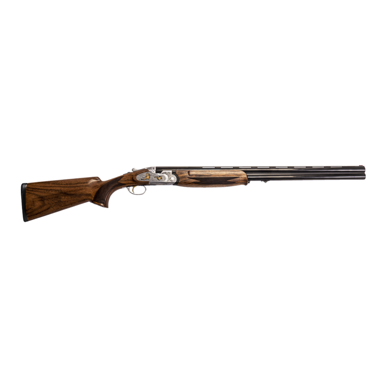 Lange Seitenplatten und System mit Federwildgravur, Flankenverschluss, Ejektoren, rotes Leuchtkorn, Wechsel-Chokes, schöner Nussbaumschaft, selektiver Einabzug