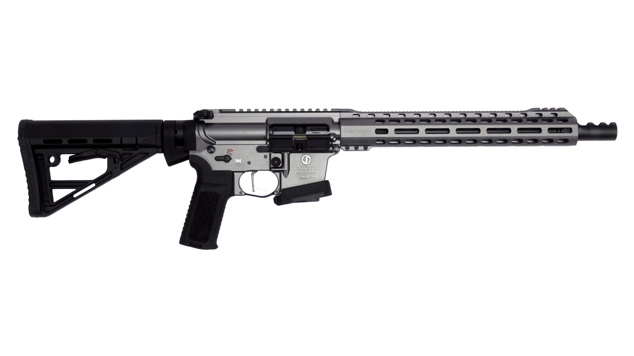 – Wird mit 10 Schuss Magazin ausgeliefert- Preis ohne OptikTRUE. GERMAN. INNOVATION. Wenn wir neue Schmeisser Produkte entwickeln, wollen wir sicherstellen, dass wir es richtig machen. Bevor wir uns nicht 100% sicher sind, kommt ein Produkt nicht auf den Markt. Als Basis für unsere neue Dynamic PCC dient unsere Standard S4F 9mm, dieses Mal aber drastisch überarbeitet um es zu einer der besten PCC Waffen auf den Markt zu machen. Für den perfekten Griff benutzen wir den neuen Schmeisser Light M-Lok Handschutz kombiniert mit einem dünnen Slim-profile Lauf und dem neuen Schmeisser Match Kompensator. Im Inneren haben wir einen Triggertech Match Abzug mit geradem Züngel, entwickelt für schnelle Schussfolgen und minimalem Reset. Das Herz der Dynamic PCC bildet das hydraulische Buffer System von Kynshot USA. In Kombination erhalten wir dadurch eine Waffe mit extrem sanftem Rückstoß und minimaler Lauf Bewegung – perfekt für jegliche dynamische Disziplin. Hydraulisches Kynshot Buffer System NEU! Schmeisser Match Kompensator Triggertech Match Trigger 6pos. Buttstock 12.5” Slim Profile Barrel Semi-Auto Blowback System Ambi. Safety Ambi. Mag Release Ambi. Bolt Catch Schmeisser Pistol Grip