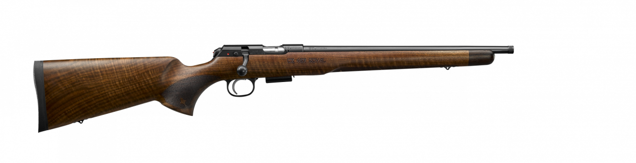 Das Modell 457 Royal ist nach dem Vorbild klassischer Jagdgewehre gefertigt und kehrt zu deren Wurzeln zurück. Der Premium-Walnuss-Schaft ist im englischen Stil mit einer abgerundeten Backe gearbeitet. Die schöne Maserung kommt durch ein Ölfinish richtig zur Geltung. Safari-Riemenbügelaufnahmen (jeweils 2-fach verschraubt) für abnehmbare Riemenbügeln sind angebracht. Der schlanke Sporter-Weight-Lauf ist in zwei Längen – 412,5 oder 525 mm – erhältlich.