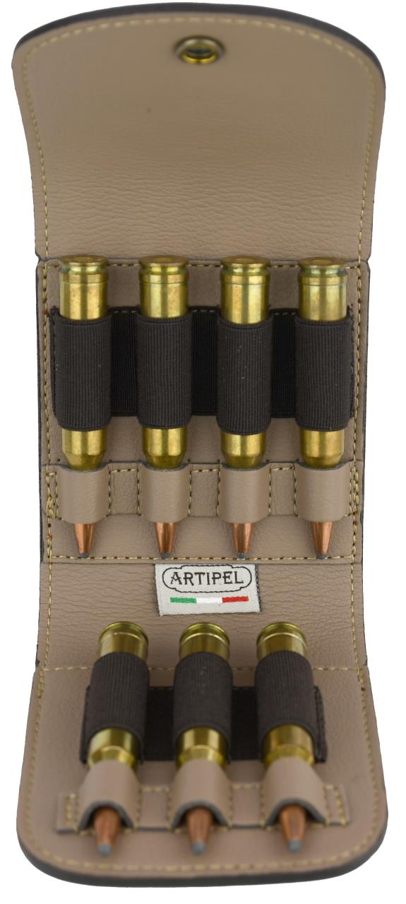 Patronenetui Artipel aus Rindsleder für 7 Patronen Kal. 223 Rem bis .300 Win Mag