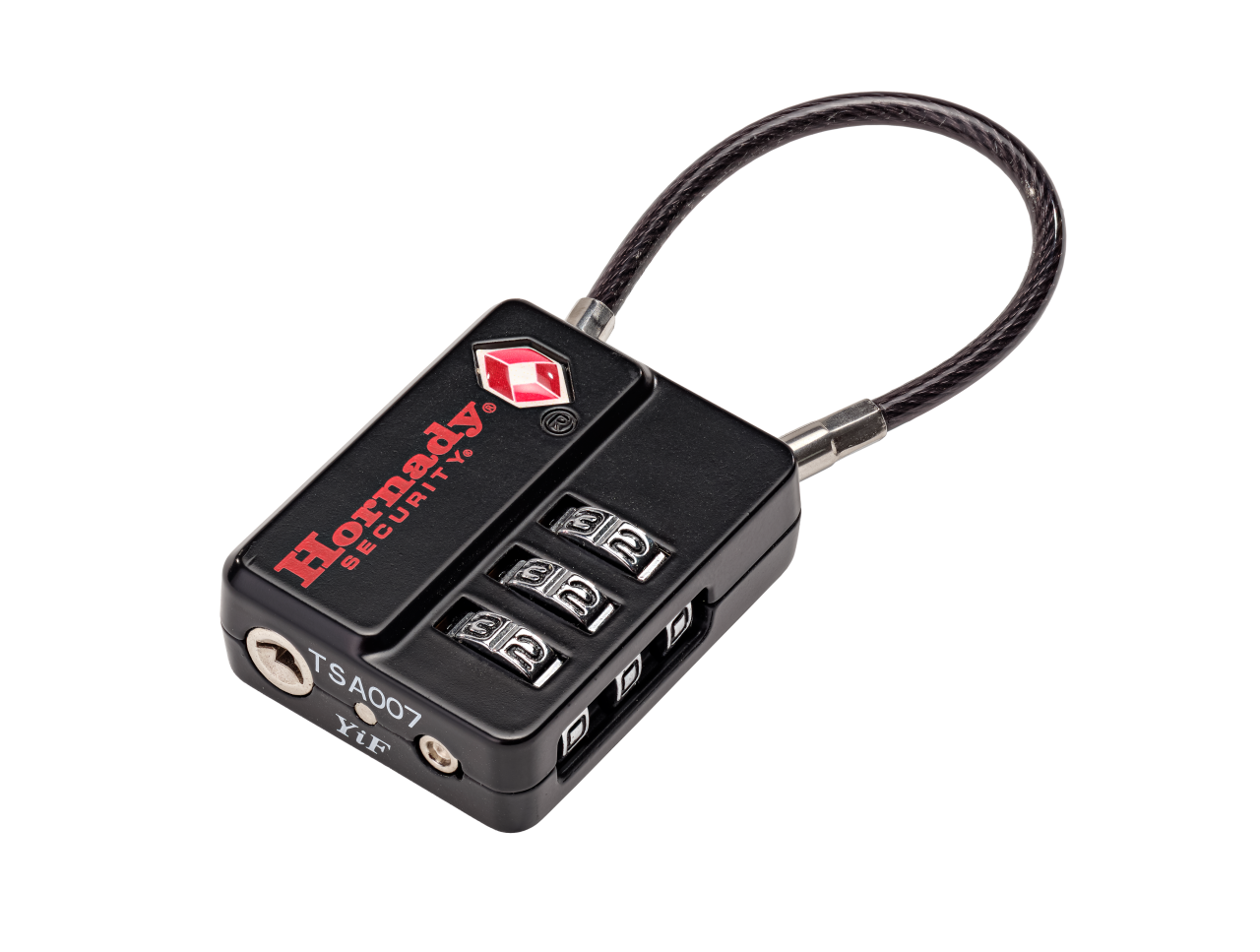 Hornady Security Accessories Flex Micro TSA LockDas auf dauerhafte Stärke und Haltbarkeit ausgelegte Hornady TSA Micro Flex-Kabelschloss ermöglicht es den Kontrolleuren, Gepäckstücke zu untersuchen, ohne das Schloss zu beschädigen.Die Drei-Ziffern-Kombination ermöglicht einen schnellen, schlüssellosen Zugang.