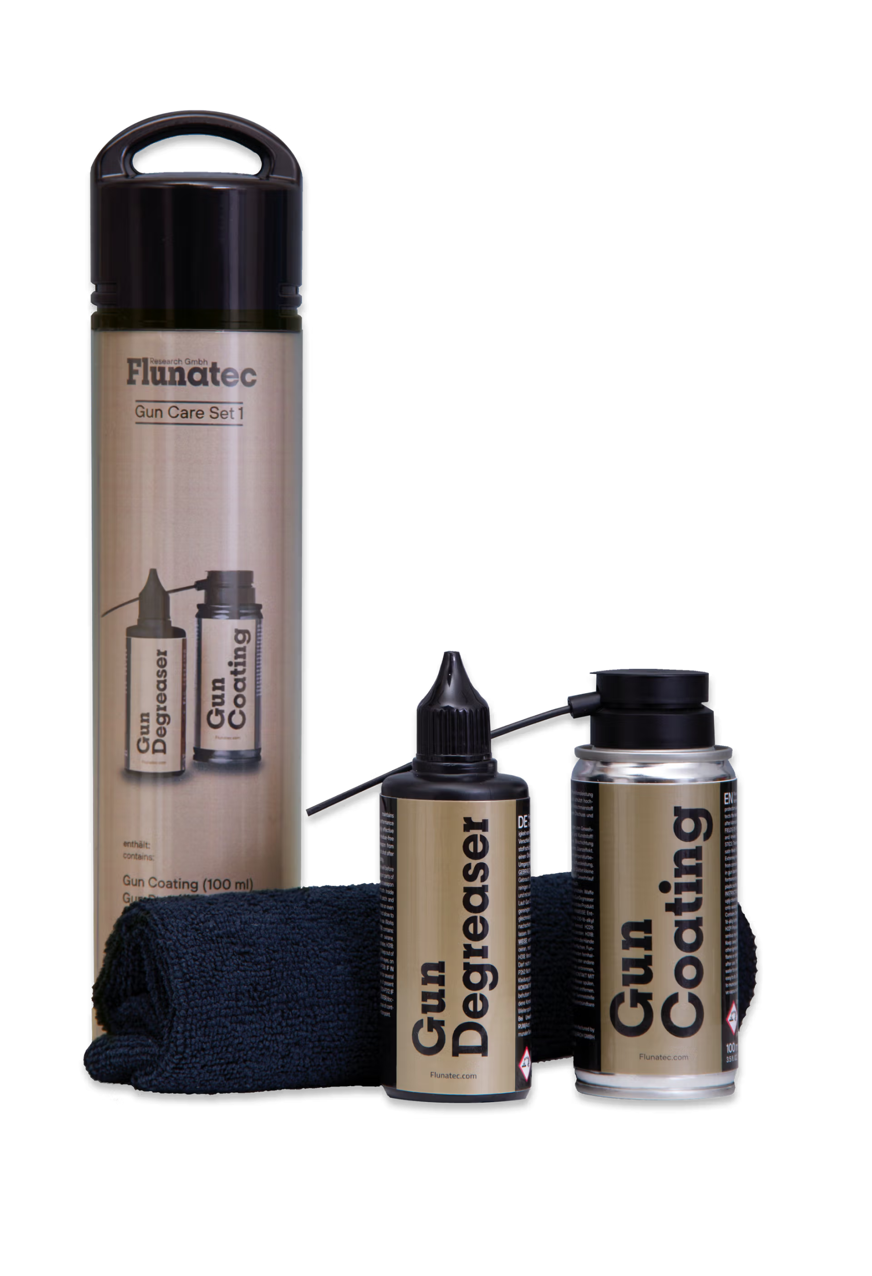 Fluna Waffenpflegeset Nr. 1 mit Degraser, Gun Caoting und Mirkrofasertuch (GDR100+GC100)